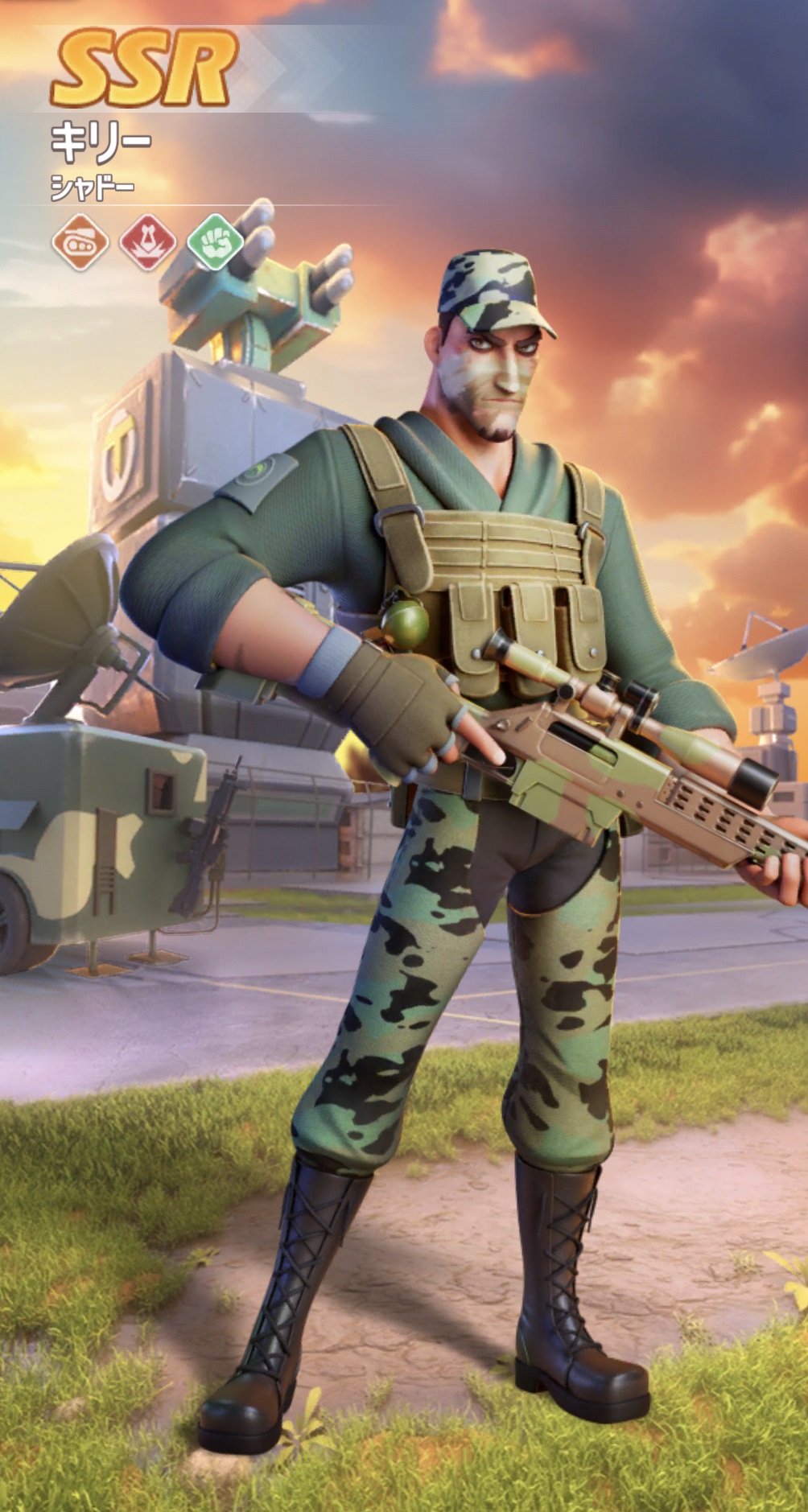 | 陸軍ユニットが通常攻撃後、一定確率で3回スキル攻撃を行い、毎回ランダムな敵1体に80.0%のダメージを与える。 |