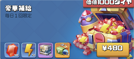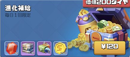 物資補給でアイテムがもらえる。他は毎日1回買えるアイテムが揃っている。
