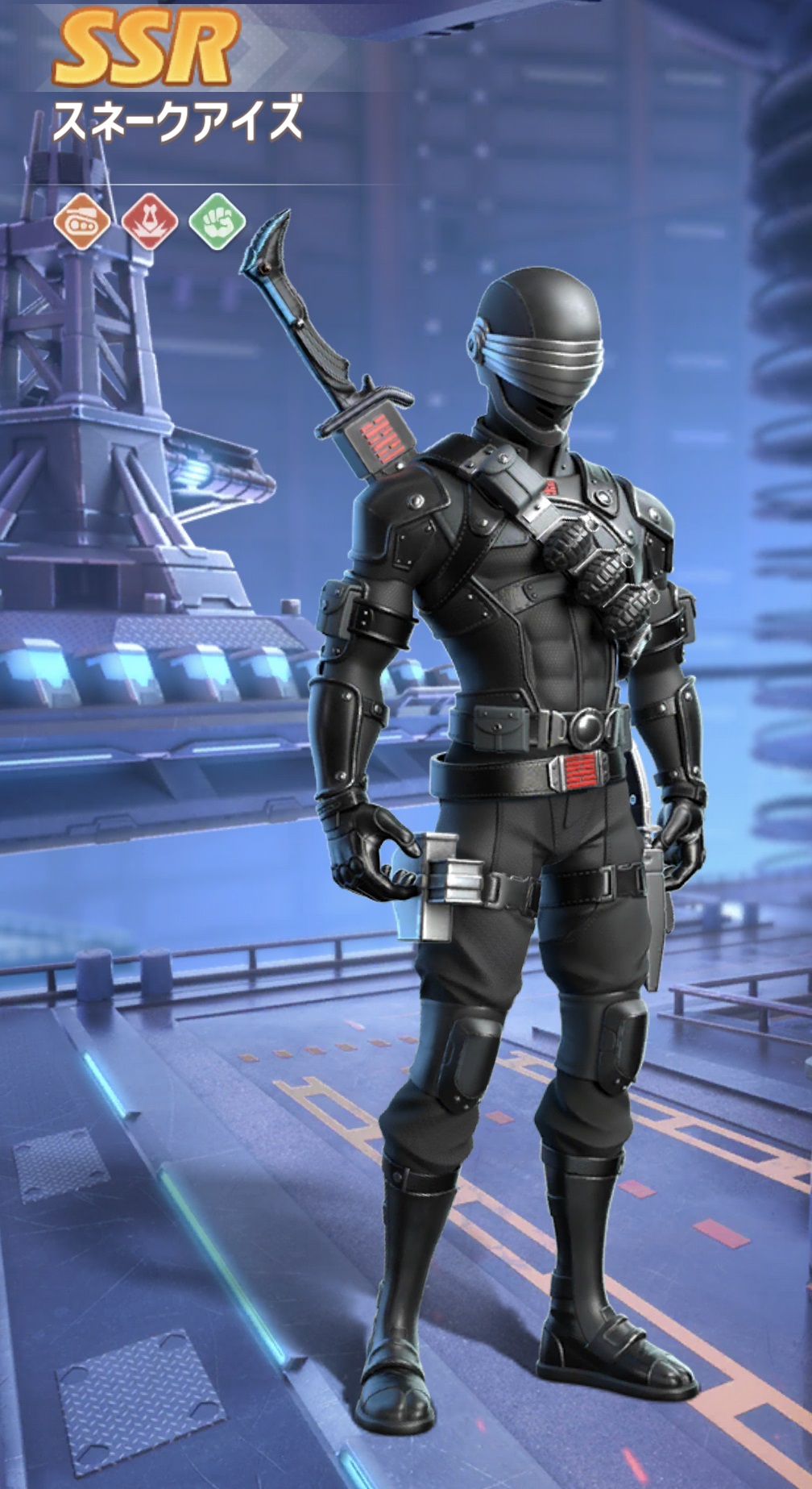 スネークアイズは銃器や格闘など、さまざまな戦闘技術に比類ない熟練度を持つ恐るべき存在だ。しかし、彼の最も危険な特性は武器に頼らず、代わりに冷静で迅速な武術的動きで敵を無力化することを好むことだ!ビビッド大陸でスネークアイズは、確実に部隊の戦闘能力を高めるだろう!