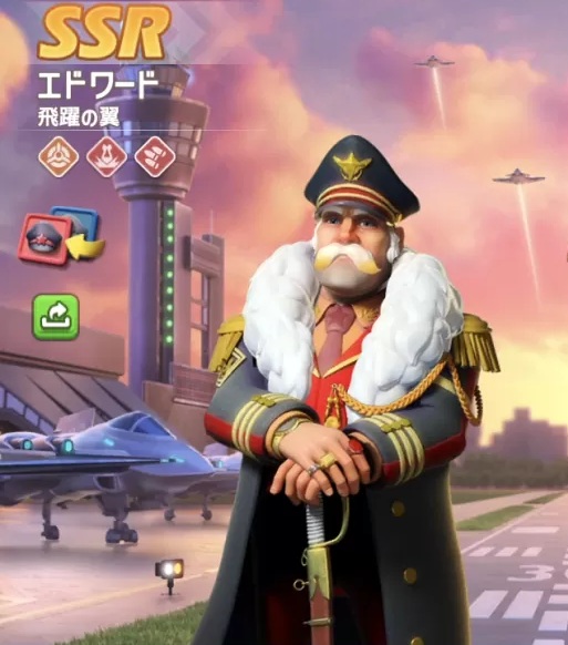 ![]() | 【大型ミサイル】英雄編成時、味方3列目の空軍ユニットの攻撃加算+100.0%、及び通常攻撃ダメージ増加+50.0%。3列目の空軍ユニットは通常攻撃後、さらに1回追加で通常攻撃できる(120Lv) |